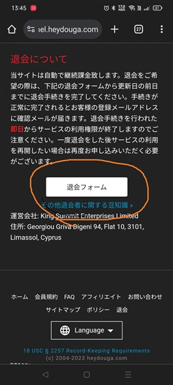 Hey動画のページを下までスクロールすると「退会」ボタンが見つかります。まずはこちらをクリックしましょう。
