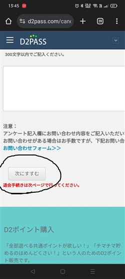 退会理由を入力する欄がありますが、必須ではありません。入力後、「次へ進む」を押してください。