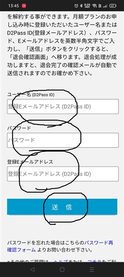 次に、「退会フォーム」ボタンを押して解約の手続き画面に進みます。
