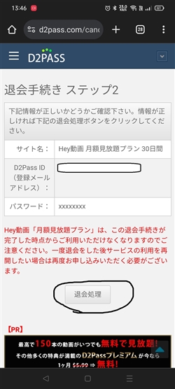 最後に「退会処理」を押さないと退会が完了しないので注意が必要です!