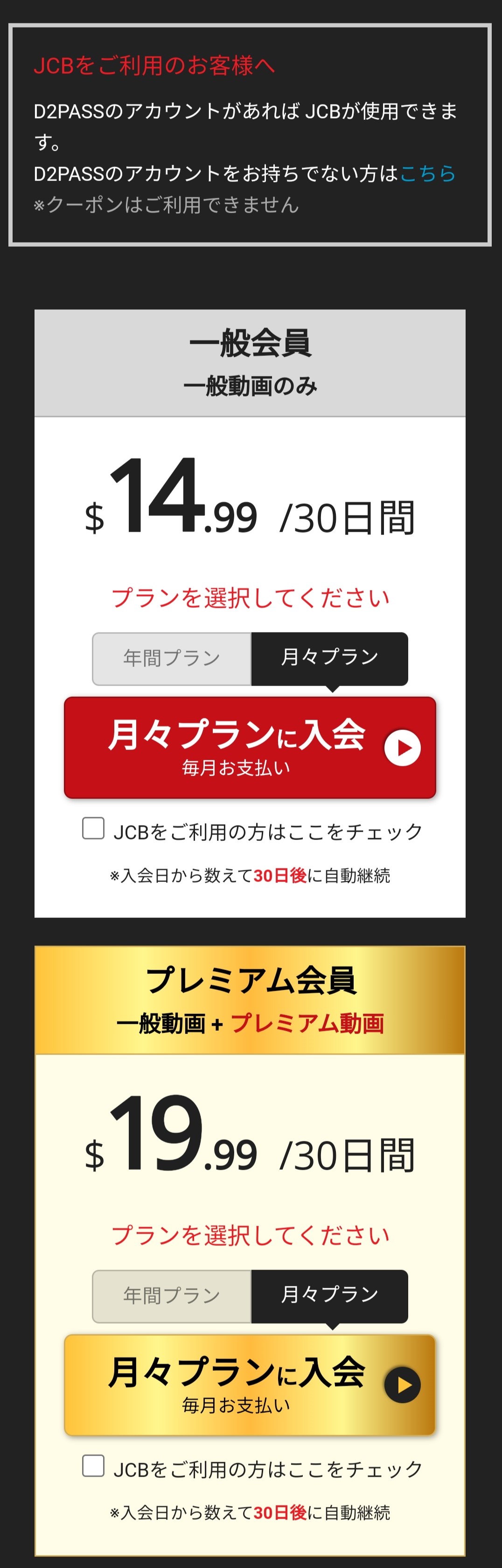 | プレミアム会員 | 月々プラン | 年間プラン |